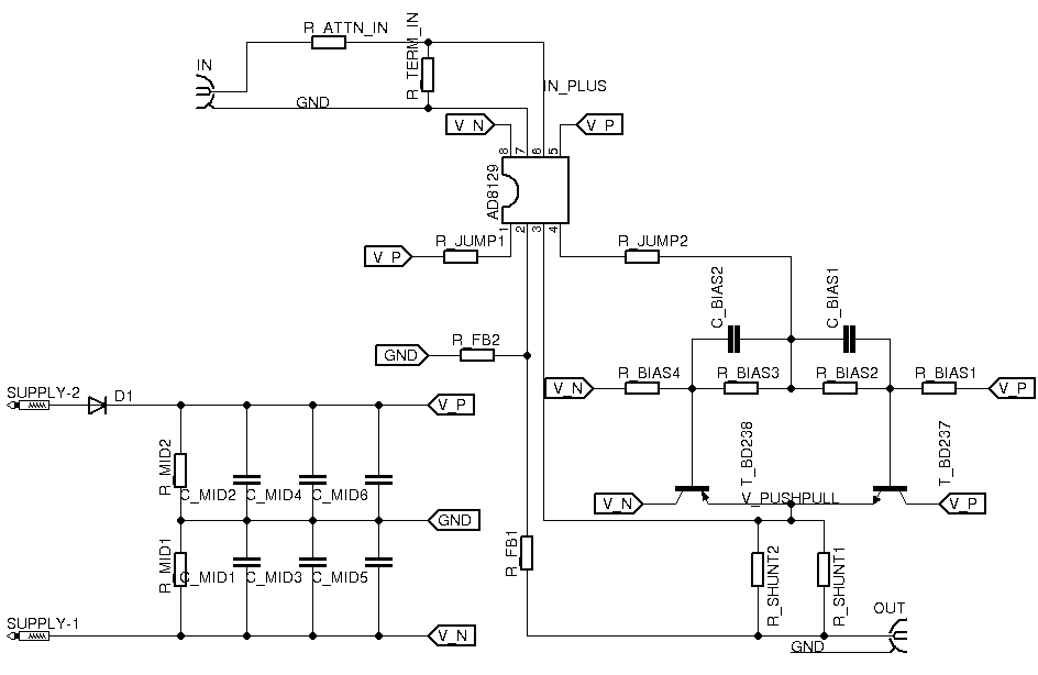Nach einigen Schwierigkeiten mit der LF-PA ist uns aufgefallen, dass mit ein wenig Einbußen bei der Angreifer-zu-Schlüssel-Reichweite durchaus auf die Verstärkerstufe verzichtet werden kann. Sowohl die der Vorverstärker, als auch die Endverstärker basieren auf dem Amplifier IC AD8129 von Analog Devices (Siehe Schaltbild).